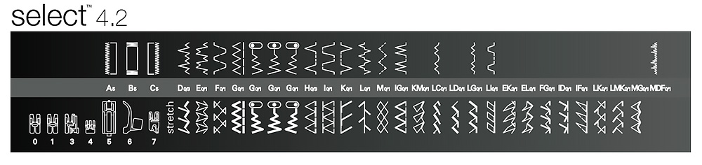 Прекрасная бытовая швейная машина профессионального уровня Pfaff Select 4.2 одна из немногих обладает вертикальным челноком двойного обегания, благодаря которому достигается лучшее качество строчек. Данная модель обладает еще большим выбором строчек, чем предыдущая Select 3.2, - целых 40 вариаций.