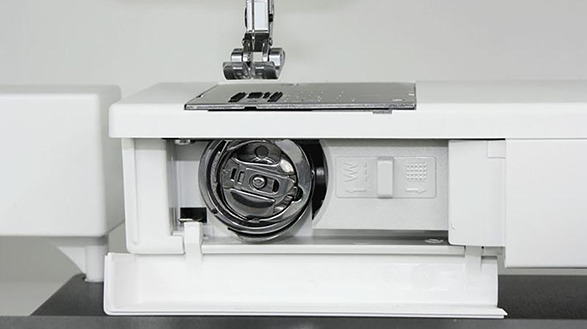 Наименее капризен и наиболее надёжен из всех, обеспечивает лучшее качество строчки на любых материалах. Важно, что натяжение нижней нити может быть легко отрегулировано для получения отличного результата практически на любой ткани.